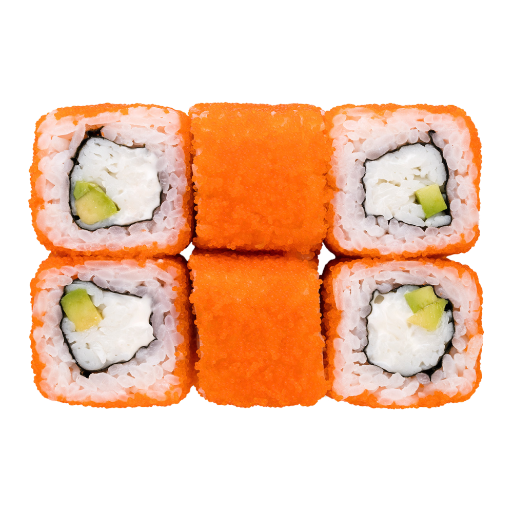 Рис, нори, майонез, огурец, снежный краб, масаго