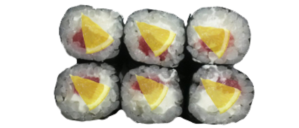 Рис, нори, лосось, сливочный сыр, лимон
