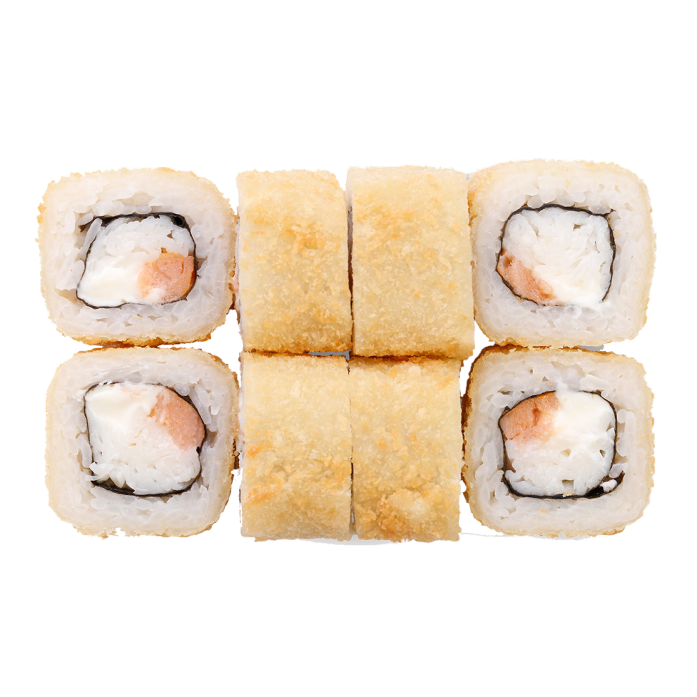 Рис, нори, лосось, сыр сливочный, снежный краб, панировочные сухари